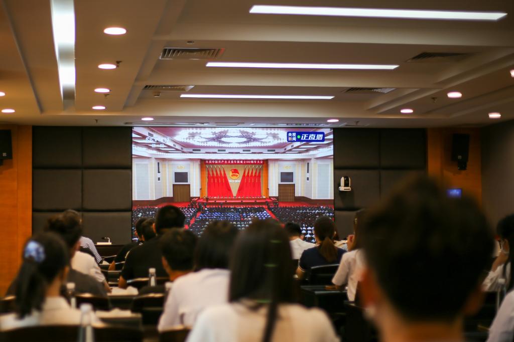 习近平总书记的重要讲话全面回顾100年来共青团坚定不移听党话、跟党走的青春历程,充分肯定共青团在党的领导下、团结带领一代代团员青年为实现中华民族伟大复兴中国梦所作出的重要贡献,深刻阐明共青团和青年工作的历史经验,对当代青年寄予殷切期望,对做好新时代共青团工作提出明确要求。在各会议室,师生们专注观看大会盛况,认真聆听习近平总书记的重要讲话,与庆祝大会会场同步高唱国歌、热烈鼓掌,内心备受鼓舞、倍感振奋。
