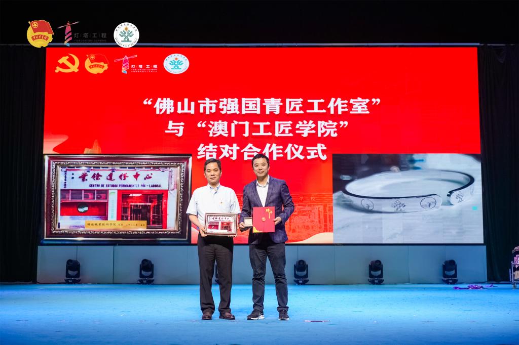 活动现场进行了佛山市强国青匠工作室与澳门工匠学院结对合作仪式,聘请裴承贤为佛山市强国青匠工作室导师。