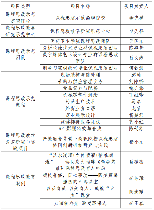 学校2023年省高职院校课程思政示范计划项目立项名单