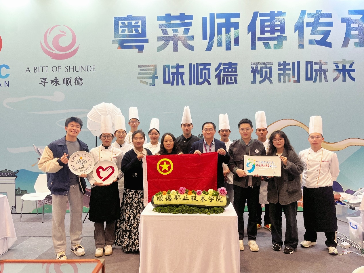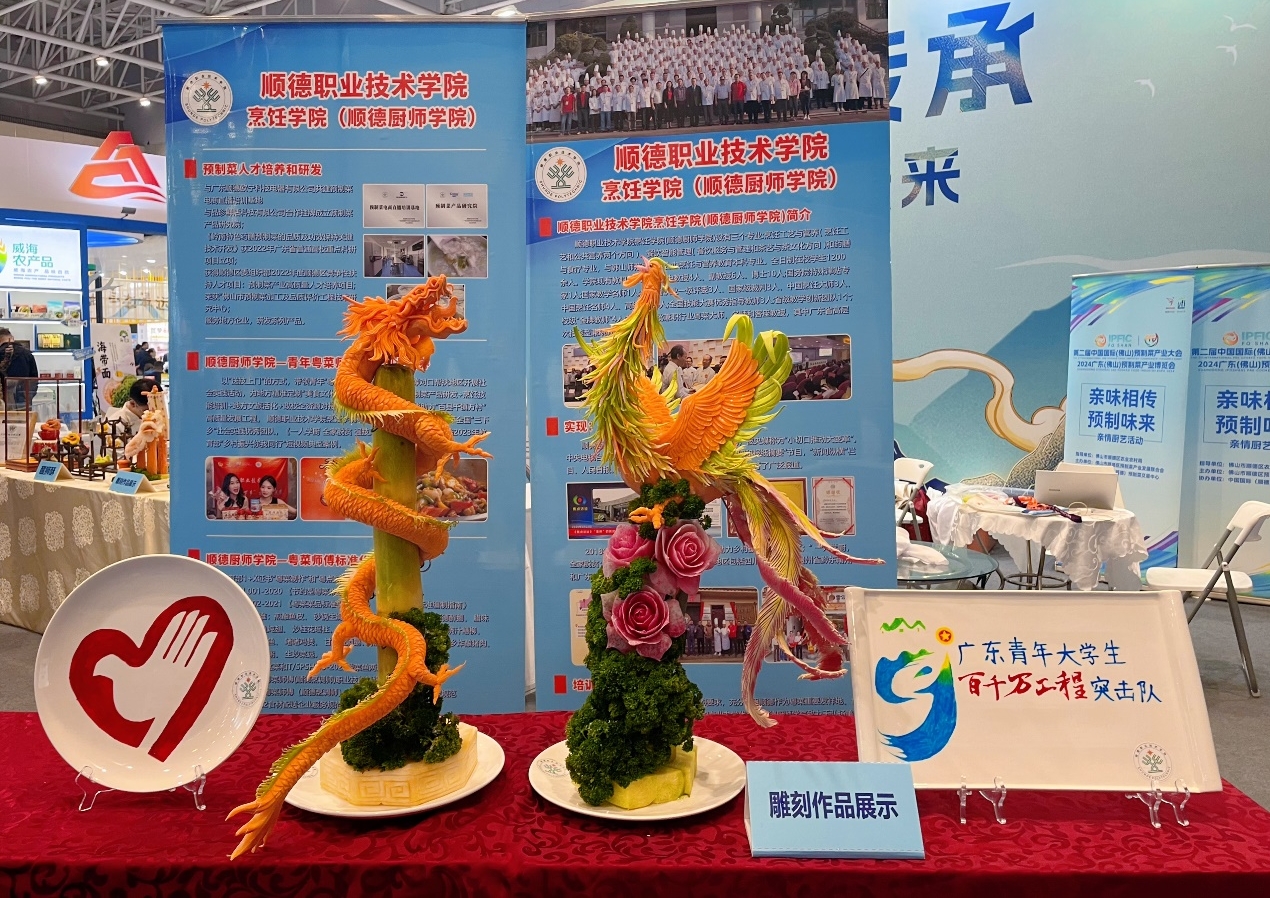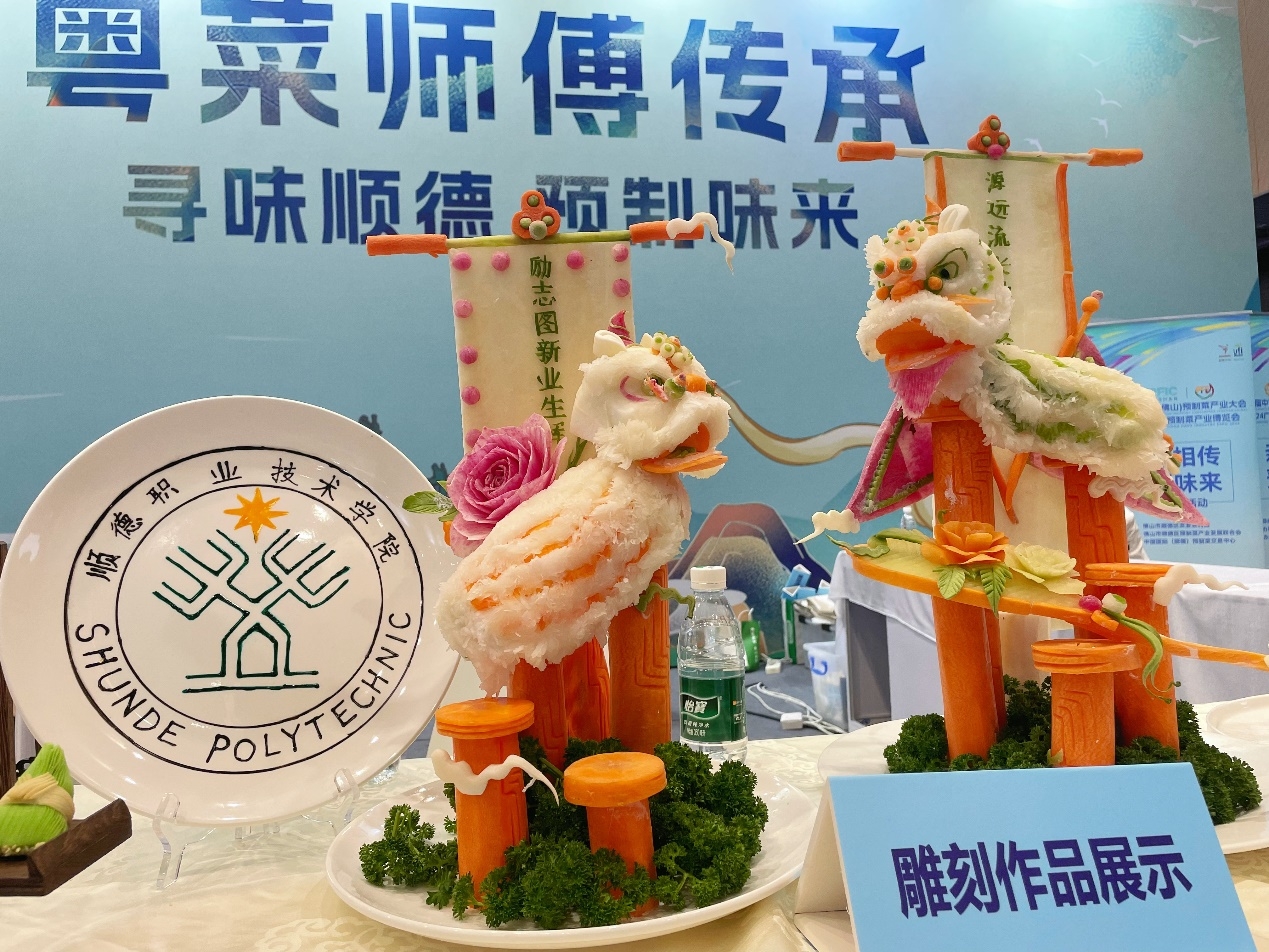 3月15日,我校烹饪学院“‘味力’四射”青年粤菜师傅“百千万工程”突击队(省级重点团队)受邀参加第二届中国国际(佛山)预制菜产业大会,现场展出食品精雕(龙凤呈祥、佛山舞狮、荷花等)、象形酥(龙狮酥、醒狮酥、松鼠酥等)、果酱画等作品,并展示粤菜烹饪技艺。