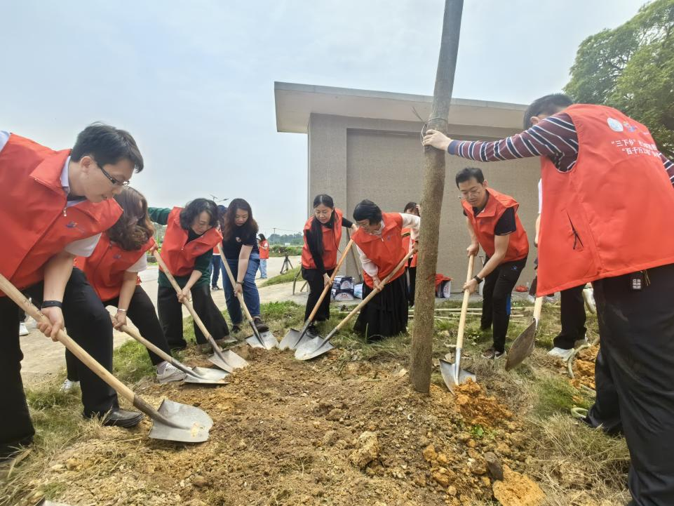 揭牌仪式结束,我校团委与佛山市新闻传媒中心、佛铁实业公司共同开展“植此青绿——‘绿美青年林’植树活动”,共植“青年林”。当天共种植54株紫荆树,寓意青年学子对五四精神的传承和发扬,激励更多青年投身到绿化祖国的伟大事业中,为实现中华民族伟大复兴的中国梦贡献青春力量。