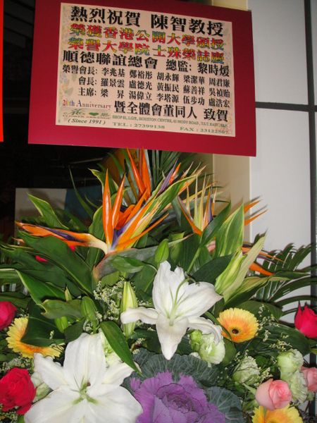 据悉,陈智教授也是本次荣获香港公开大学大学荣誉大学院士的五位杰出人士中唯一一位大陆人士。香港顺德联谊总会欣闻这一喜讯专门致贺。香港顺德联谊总会总监黎时缓,荣誉会长李兆基、郑裕彤、胡永辉、梁洁华、周君廉,会长罗景云、卢德光、黄振民、苏善祥、吴祯贻,主席梁升、汤伟立、李塔源、伍步功、卢浩宏暨全体会董同人,专程给颁授典礼赠送花蓝,特致祝贺。梁洁华名誉会长亲临香港公开大学第十一届荣誉院士颁授典礼,向我校名誉院长陈智表示祝贺!