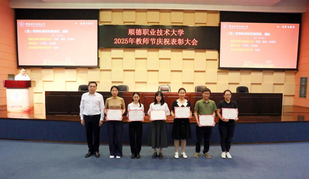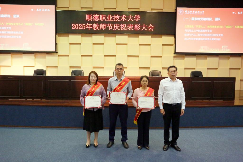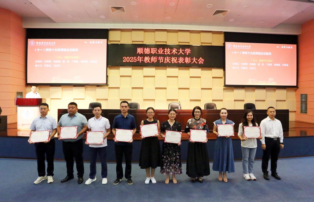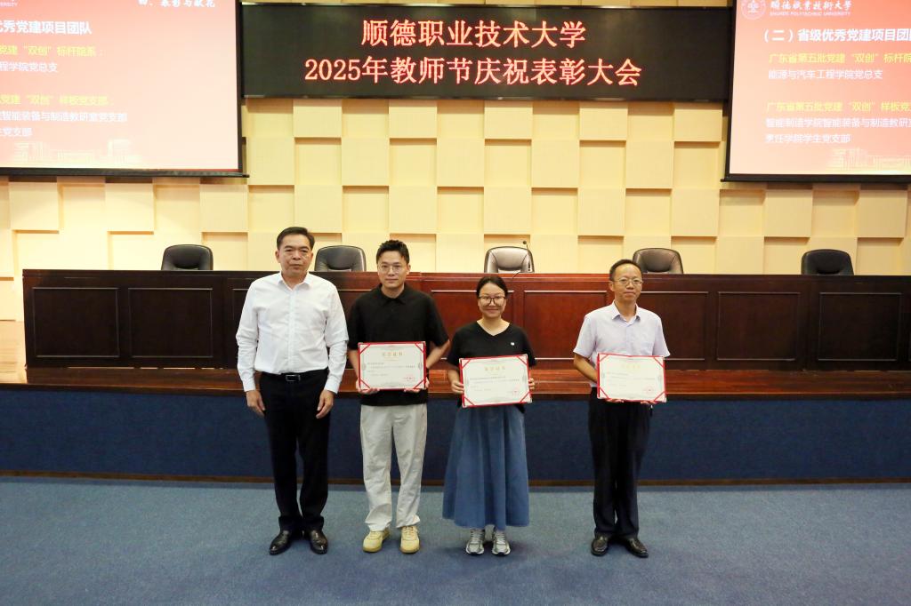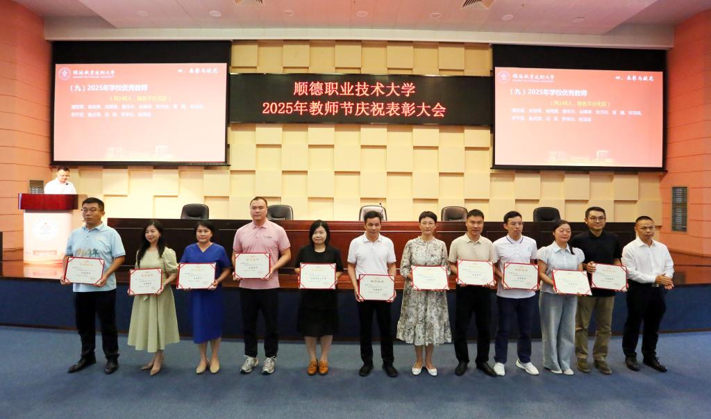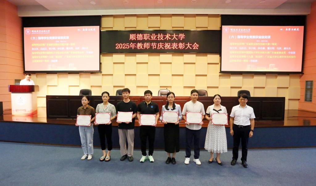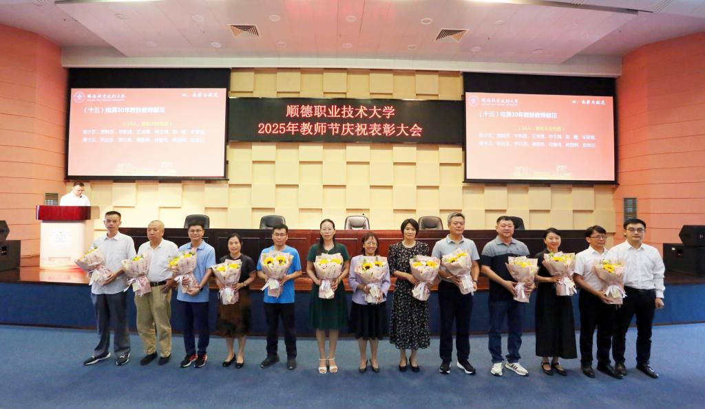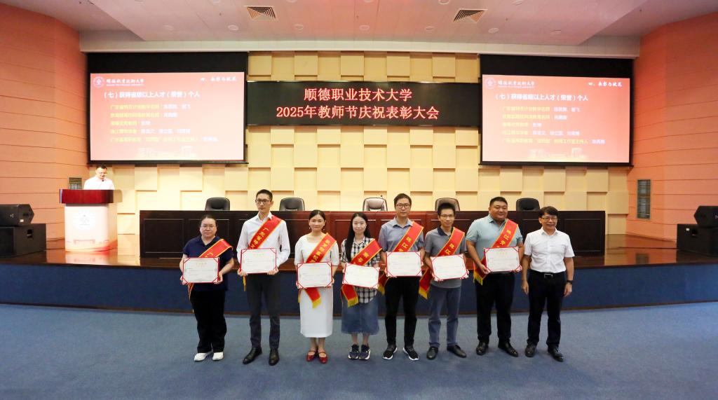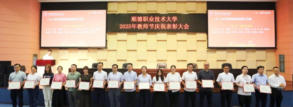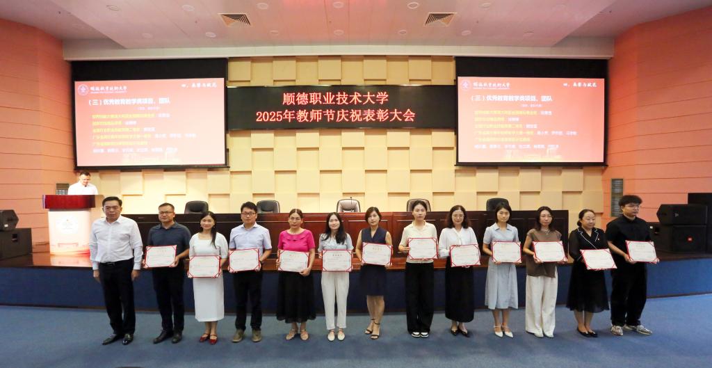 会议对优秀教师和优秀教育工作者进行表彰。学校党委委员、副校长杨小东宣读表彰决定。校领导分别为获得全国首批“双带头人”教师党支部书记“强国行”专项团队,获得广东省第五批党建“双创”标杆院系、样板党支部的教师(团队),获得优秀教育教学类项目的教师,获得优秀科学研究类项目的教师,指导学生竞赛获国家级奖项的教师,指导学生竞赛获省级奖项的教师,获得省级以上人才(荣誉)的教师,获得顺德区先进荣誉的教师,以及学校优秀教师、优秀教育工作者、十大优秀班主任标兵、优秀辅导员颁奖,为满30年教龄的教育工作者献花,为年度荣休教师代表颁发荣休纪念品、献花。