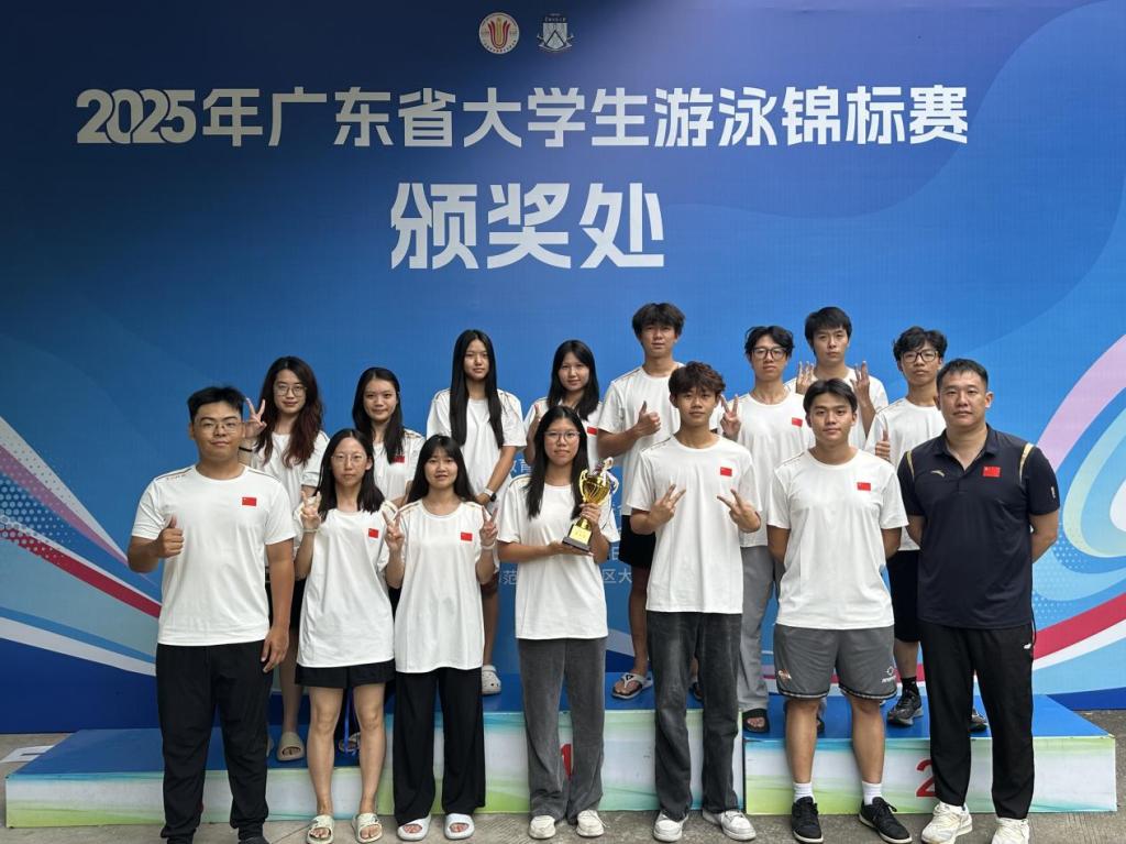 10月10日至13日,2025年广东省大学生游泳锦标赛在华南师范大学举行。本次赛事汇聚了全省71所高校的112支队伍、千余名运动员同台竞技,我校游泳队在教师冯旭辉的带领下团结合作、奋勇拼搏,最终斩获金牌1枚、银牌4枚,名列团体总分第七名,获丙组团体总分一等奖。