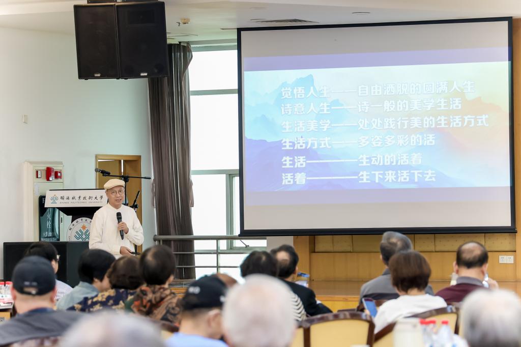 退休教师彭亮教授作“AI时代的智慧退休生活”专题讲座。他结合自身的经历,围绕其美学人生座右铭、教育的延续与升级、国际游学、行业顾问、拥抱AI、书法修行等方面作工作、学习、生活分享。彭亮表示,“退休不是退出,而是换个舞台继续登场;年龄不是限制,而是积累智慧的资本;在AI时代,我们不是被淘汰的一代,而是最懂得以人生智慧与阅历驾驭AI技术的一代。”