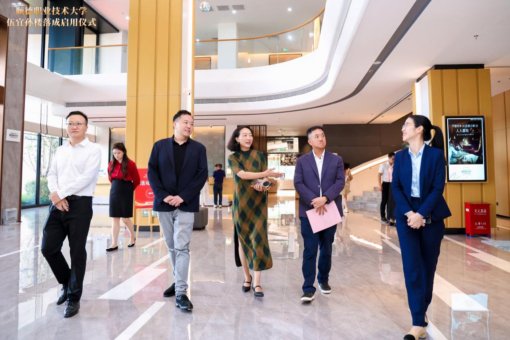 仪式开始前,伍尚宗、伍尚修等参观了学校校园及教学酒店(顺德万豪万枫酒店),实地考察酒店运营和实训教学情况。
