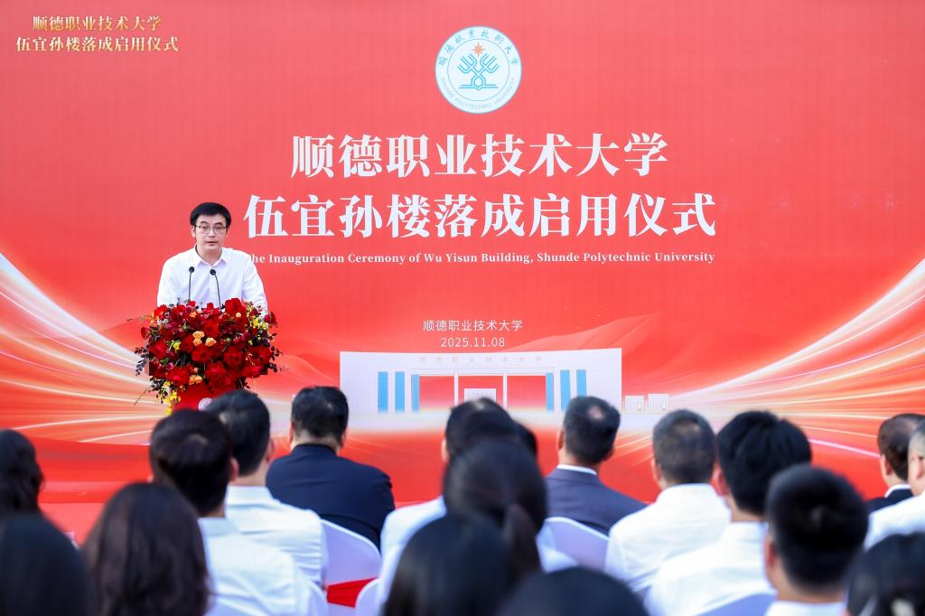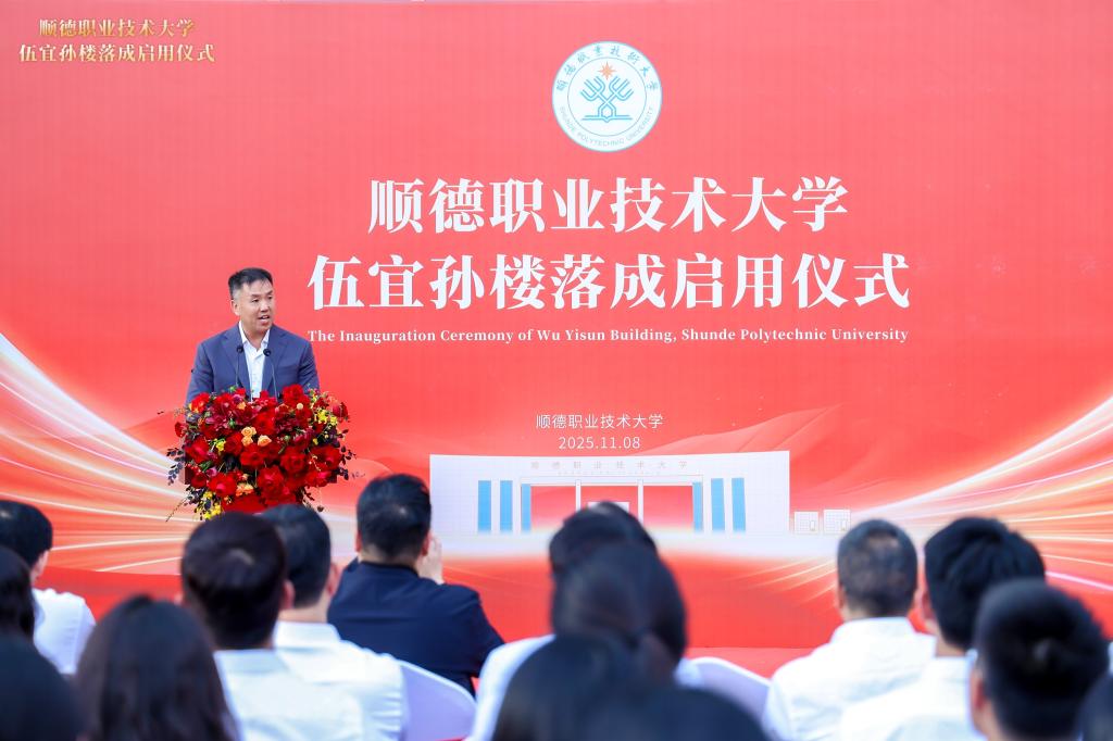 11月8日下午,顺德职业技术大学伍宜孙楼落成启用仪式举行。伍氏家族第三代代表、伍氏家族投资办公室合伙人、伍宜孙慈善基金会董事及律师伍尚宗,伍氏家族投资办公室合伙人、墨尔文国际学校集团亚洲区联席创办人、伍宜孙慈善基金会董事伍尚修;佛山市顺德区委常委、统战部部长梁伟沛,顺德区委统战部常务副部长区植朋,顺德区侨联主席吴蔚;学校党委书记卢清华,有关职能部门、二级学院负责人,师生及校友代表等参加活动,共同见证伍宜孙楼正式落成启用。