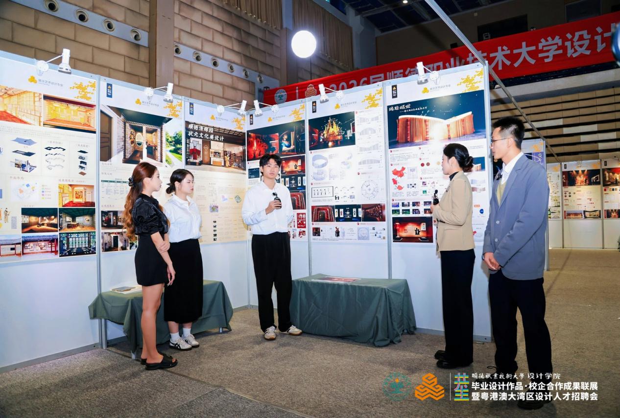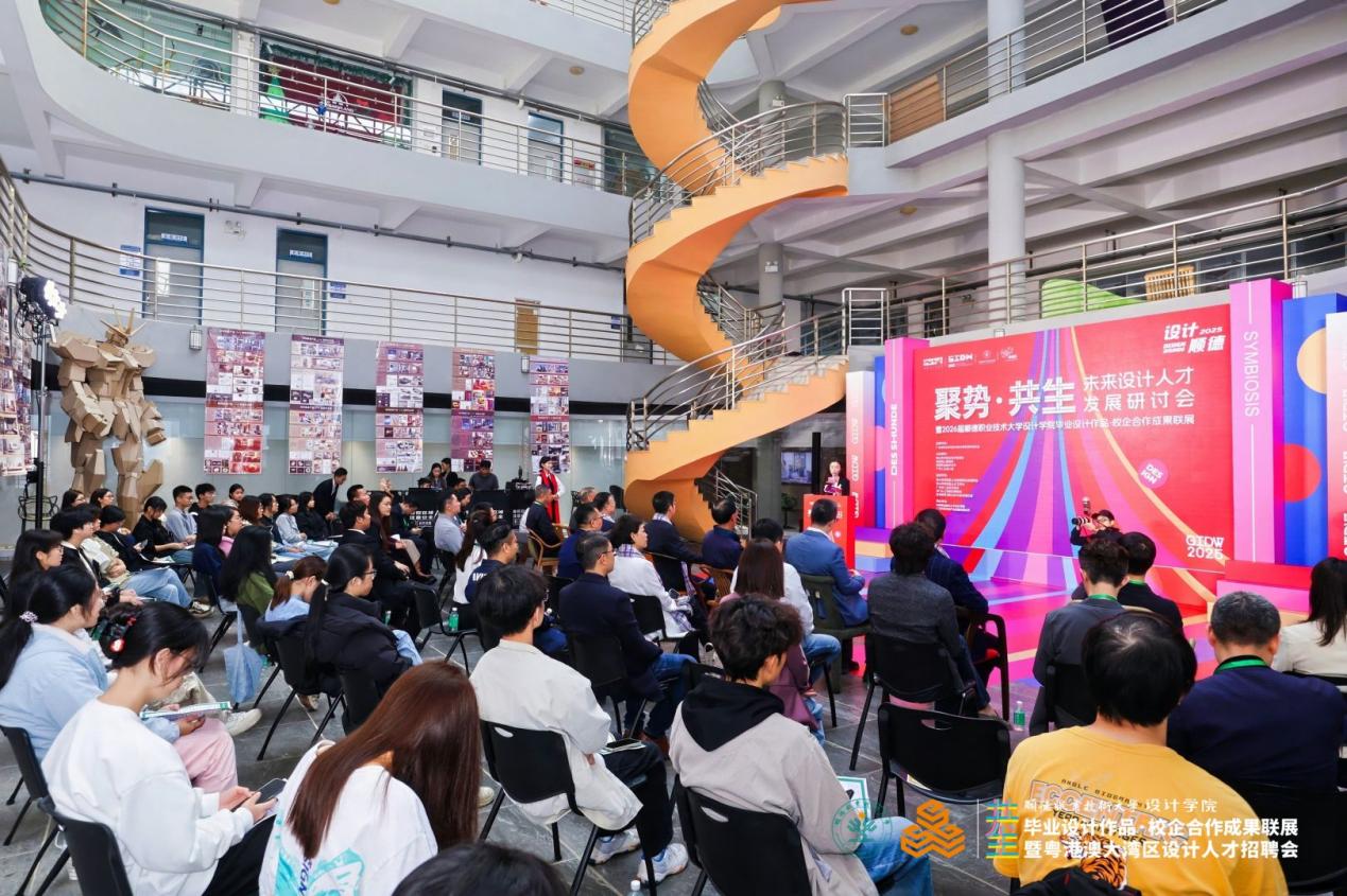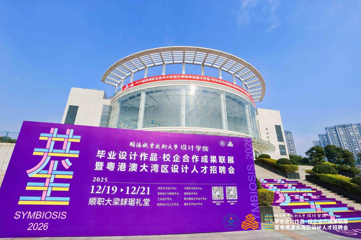 12月19日,以“共生”为主题的顺德职业技术大学设计学院2026届毕业设计作品·校企合作成果联展暨粤港澳大湾区设计人才招聘会在梁銶琚堂举行。其中,成果展汇聚设计学院8个专业、近900名2026届毕业生的优秀毕业设计作品;招聘会吸引118家企业现场招聘、数百家企业线上“云招聘”。线上线下观展师生及行业企业代表超10万人次,共同构建设计与产业、传统与创新、学校与社会的“共生”生态。