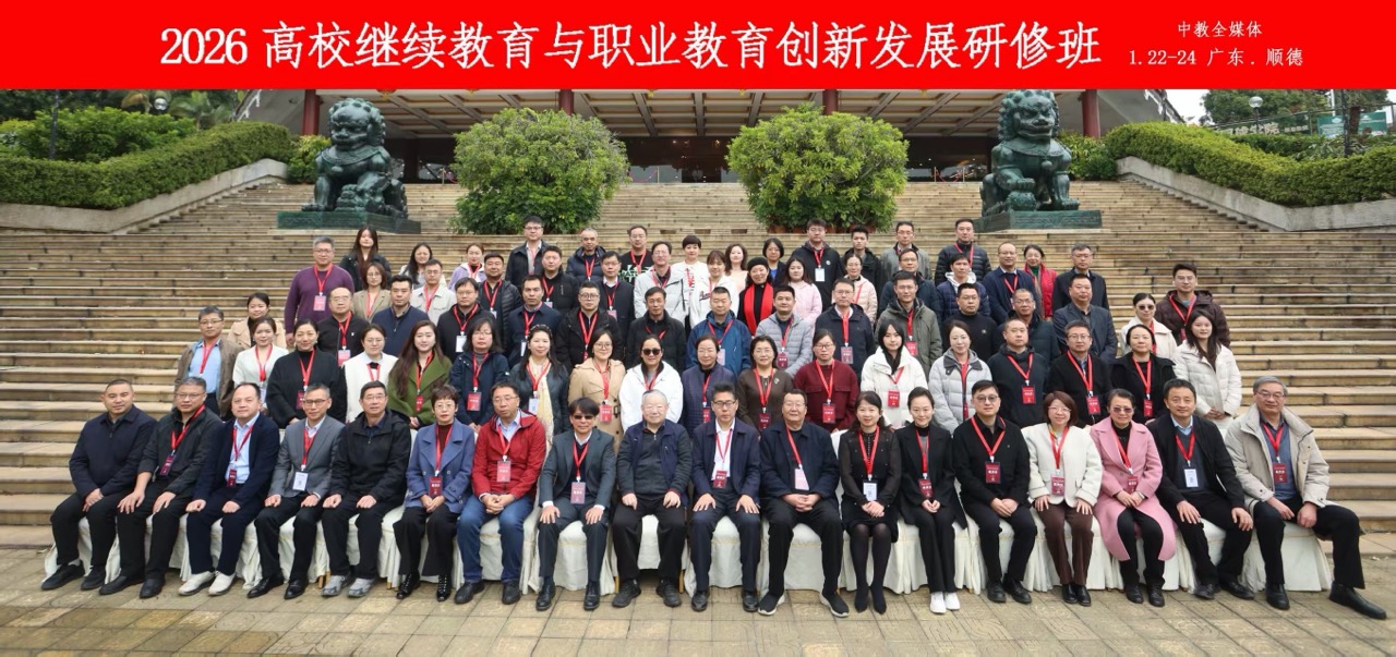 1月22日至23日,由全国高校现代远程教育协作组指导、中教全媒体主办、我校承办的“2026高校继续教育与职业教育创新发展研修班”在顺德仙泉酒店举办。本次研修班以“AI赋能・产教协同:高校继续教育创新发展新路径”为主题,汇聚全国教育界专家学者与行业精英,共同探讨数字化转型与智能化升级背景下继续教育的发展新方向。作为本次研修班的承办与支持单位,学校为活动的顺利开展提供了高水平的组织与服务保障。
