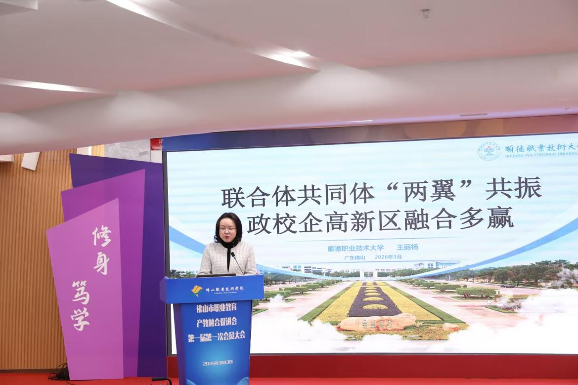 3月13日上午,佛山市职业教育产教融合促进会(以下简称“促进会”)成立大会在佛山职业技术学院举行,市教育局、市人社局、市发改局等相关领导,全市行业企业、职业院校代表200余人参加会议。我校当选为促进会副会长单位,科技处负责人代表学校作专题报告。