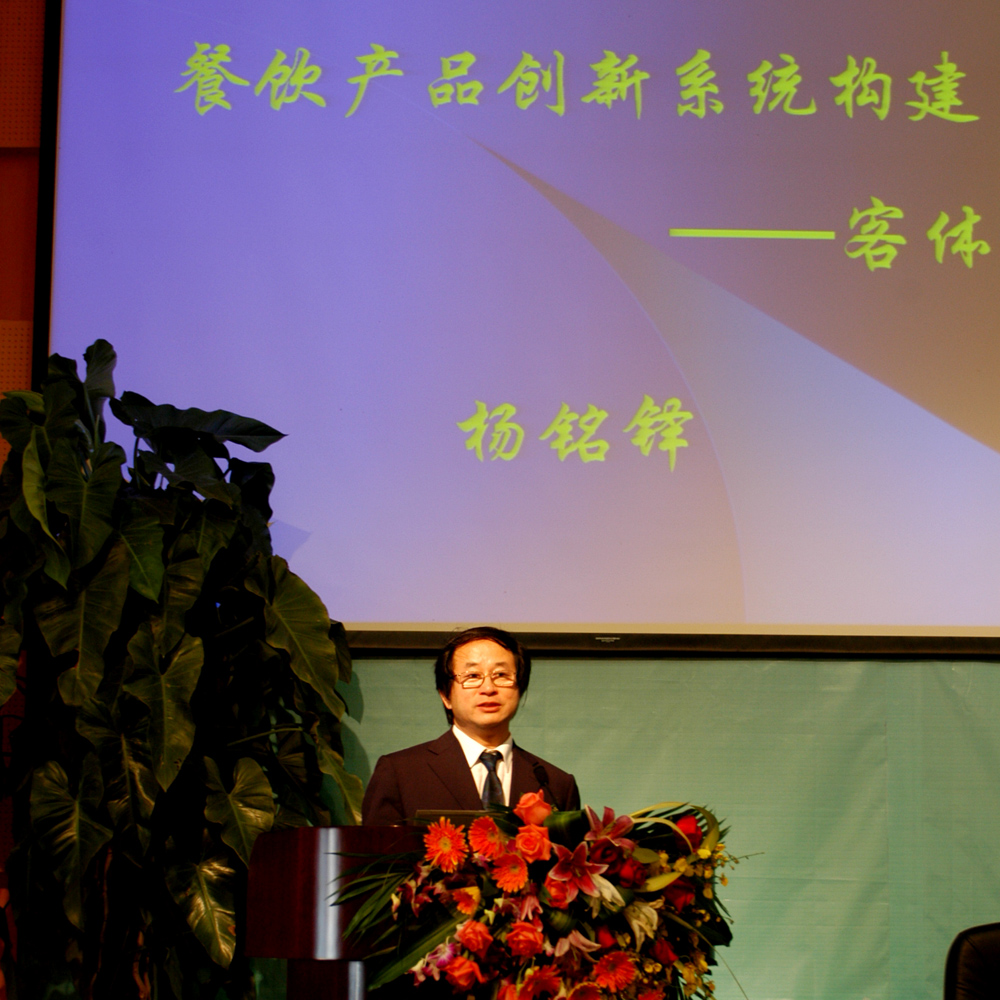 杨铭铎教授  博士生导师,国务院特殊津贴专家,历任黑龙江商学院旅游烹饪系主任、学院副院长,哈尔滨商业大学副书记、副校长。现任中国烹饪协会专家工作委员会副主任、黑龙江省科协副主席、哈尔滨商业大学中式快餐研究发展中心博士后科研基地主任、黑龙江省旅游学科带头人。