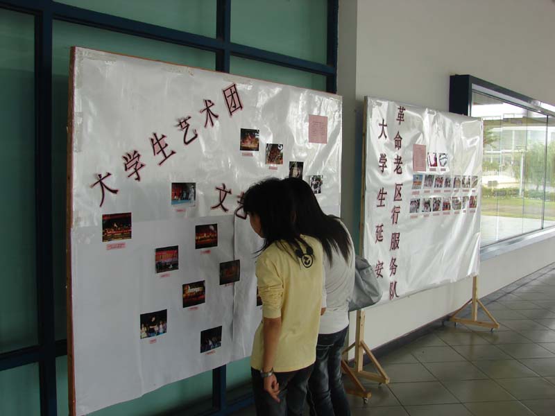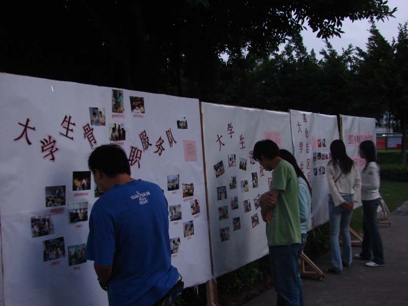 10月11日-17日,顺德职业技术学院2007年暑假“三下乡”社会实践活动大型图片展在生活区、图书馆门前展出。展出反映了我院8个服务队共300多名当代大学生奉献、求实、进取的精神风貌。同时,由学院团委网络部制作完成的成果展短片以E栋的墙壁作为屏幕进行播放。