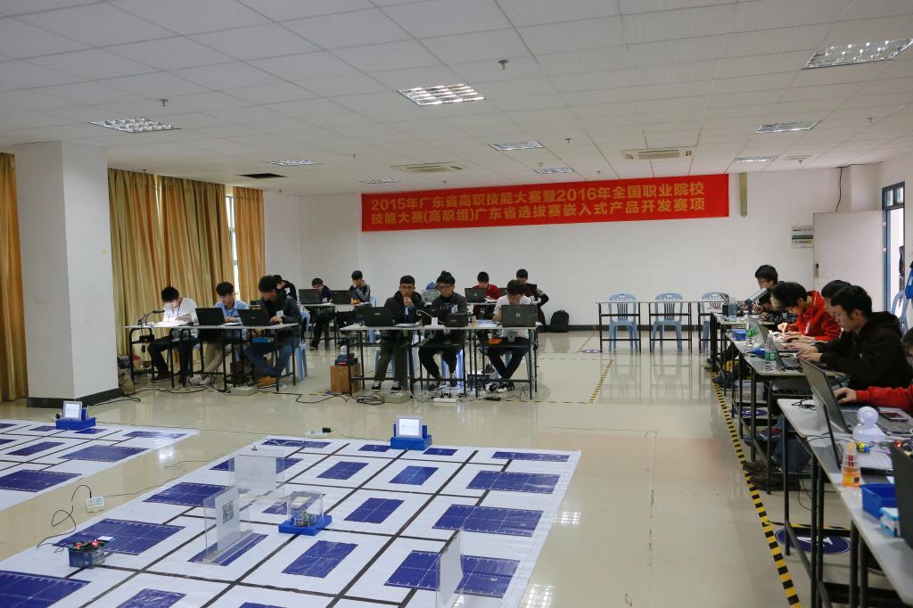 12月26日,由省教育厅主办、我校承办的2015年广东省高职技能大赛暨2016年全国职院校技能大赛(高职组)广东省选拔赛工业机器人、嵌入式产品开发、护理技能和英语口语共4个赛项顺利拉开帷幕。来自全省的78所高职院校、203支代表队、652名参赛学生、346名指导老师共约1000余人参加了比赛。竞赛过程精彩缤纷,在紧张而又和谐的竞赛氛围中,参赛师生充分展示了团结协作、奋勇拼搏、积极进取的优秀职业素养。经过2天的激烈竞争和精彩拼搏,4个赛项的比赛圆满结束。