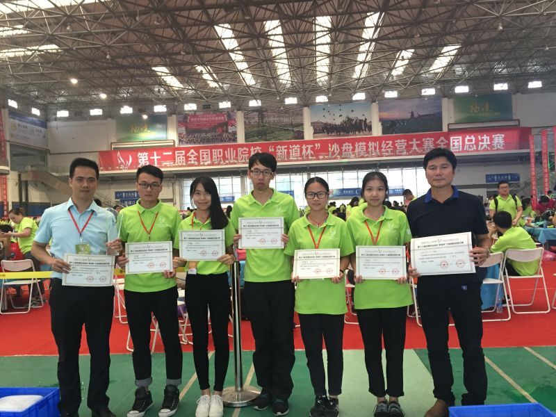 7月16日至18日,第十二届全国职业院校“新道杯”沙盘模拟经营大赛全国总决赛在陕西杨凌职业技术学院举行。我校代表队由校团委书记张业华带领赴陕西进行比赛。此次代表队由经管学院教师符茂、陈宇诗指导,经管学院庄泽凯、吴倩欣、梁婉怡、方锦颖、宁良韬5名同学组成。经过激烈角逐,我校代表队荣获全国二等奖的优异成绩。此外,由于工作突出,我校还荣获了全国优秀组织奖和全国优秀指导老师这两项荣誉。