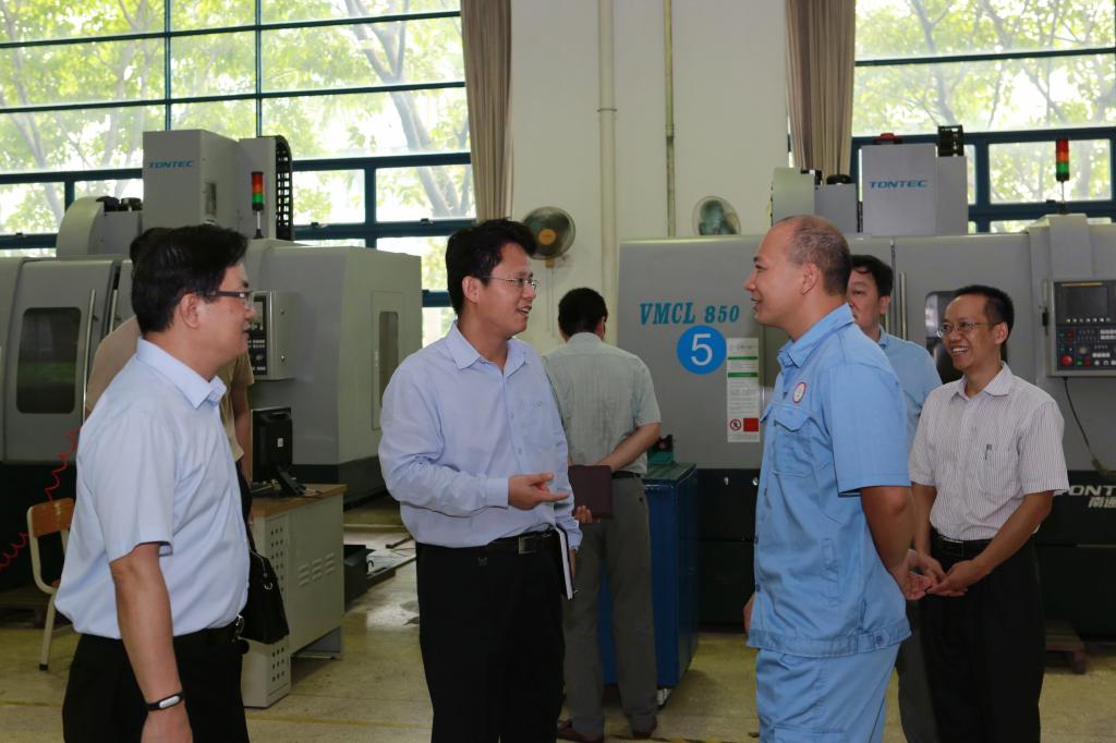 参观我校机电工程学院实训室,王勇常委(左二)与我校教师亲切交谈