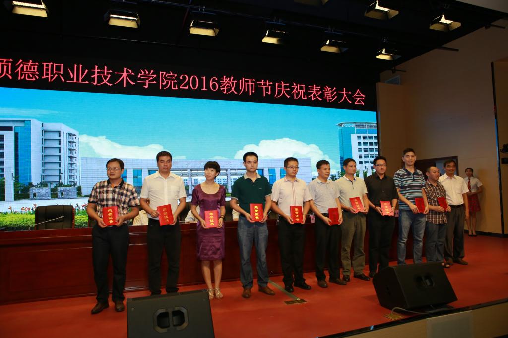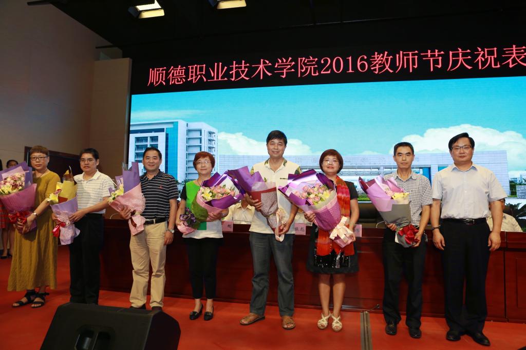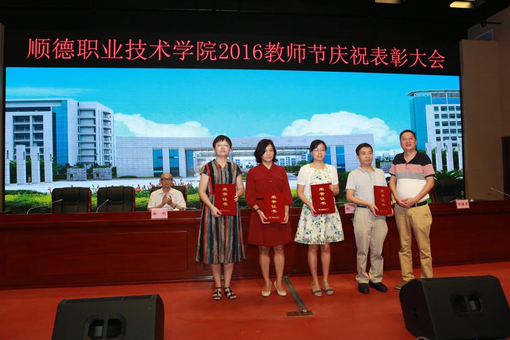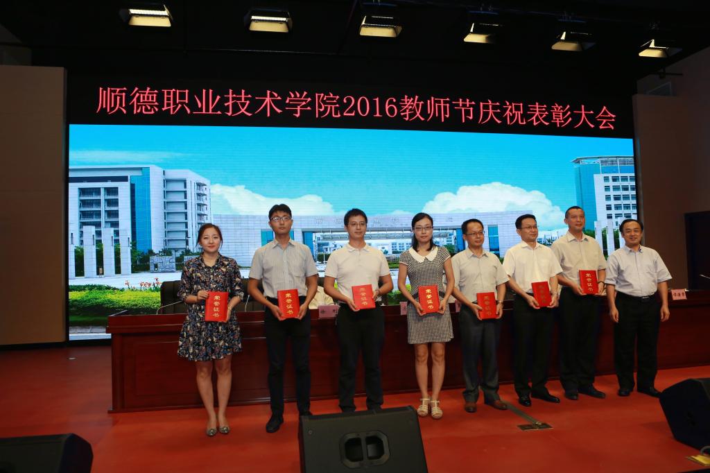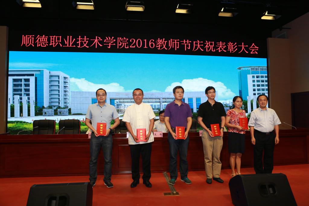 9月7日下午,我校在李佘少鸿楼一楼报告厅和5号报告厅举办2016年教师节庆祝表彰大会。学校领导夏伟、刘毓、齐振彪、陈粟宋、徐刚、谭谦章,顺德民营企业发展商会常务副会长郑纯杰,学校全体教职员工参加了大会。会议由我校党委副书记、副校长刘毓主持。