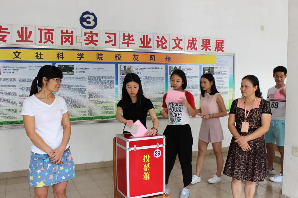 学校党委副书记、副校长刘毓讲话。他说,投票选举佛山市顺德区第十六届人民代表大会代表,是人民当家作主的具体体现,是履行选民职责的实际行动。希望各位选民珍惜自己的民主权利,遵守会场纪律,有秩序地投下自己神圣的一票。