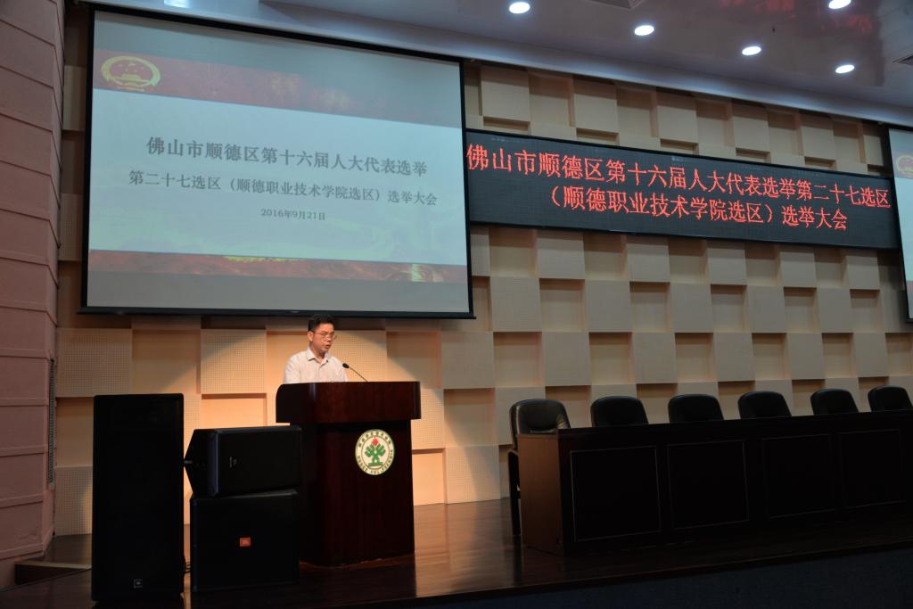 9月21日是顺德区、镇两级人大代表投票选举日,我校作为顺德区属第二十七选区组织召开了“佛山市顺德区第十六届人大代表选举区属第二十七选区(顺德职业技术学院选区)选举大会”,全校一万多名选民依法行使民主权利,投下庄严而神圣的一票。