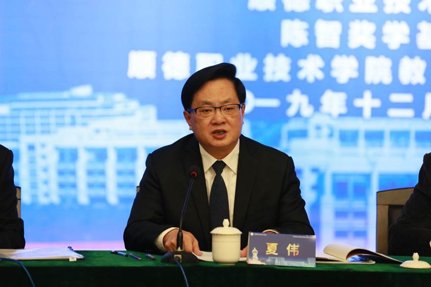 理事会上,夏伟致辞。他介绍了陈智奖学金为了奖励优秀学子,树立良好榜样的初衷,并向理事会成员表达了感谢。他表示,学校的成就离不开陈智奖学基金的理事和企业家的支持,学校将继续为实现顺德人的大学梦而努力。