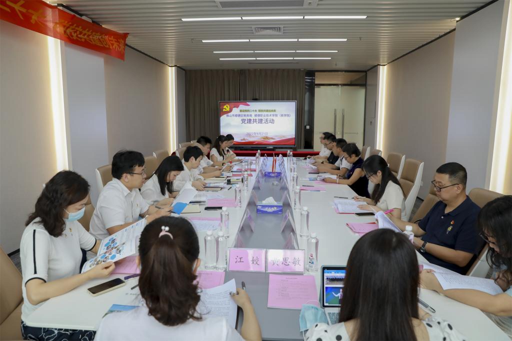 9月21日,顺德区税务局党委委员、副局长何柳率顺德区税务局办公室党支部、机关党委党支部、组织人事股党支部成员一行来到我校,与商学院党总支共同举办“喜迎党的二十大,税校共建创未来”主题基层党组织结对共建活动。活动在广东-亚琛工业4.0应用研究中心举行,学校党委委员、副校长杨小东,商学院党总支书记陈曦及总支委员参加。