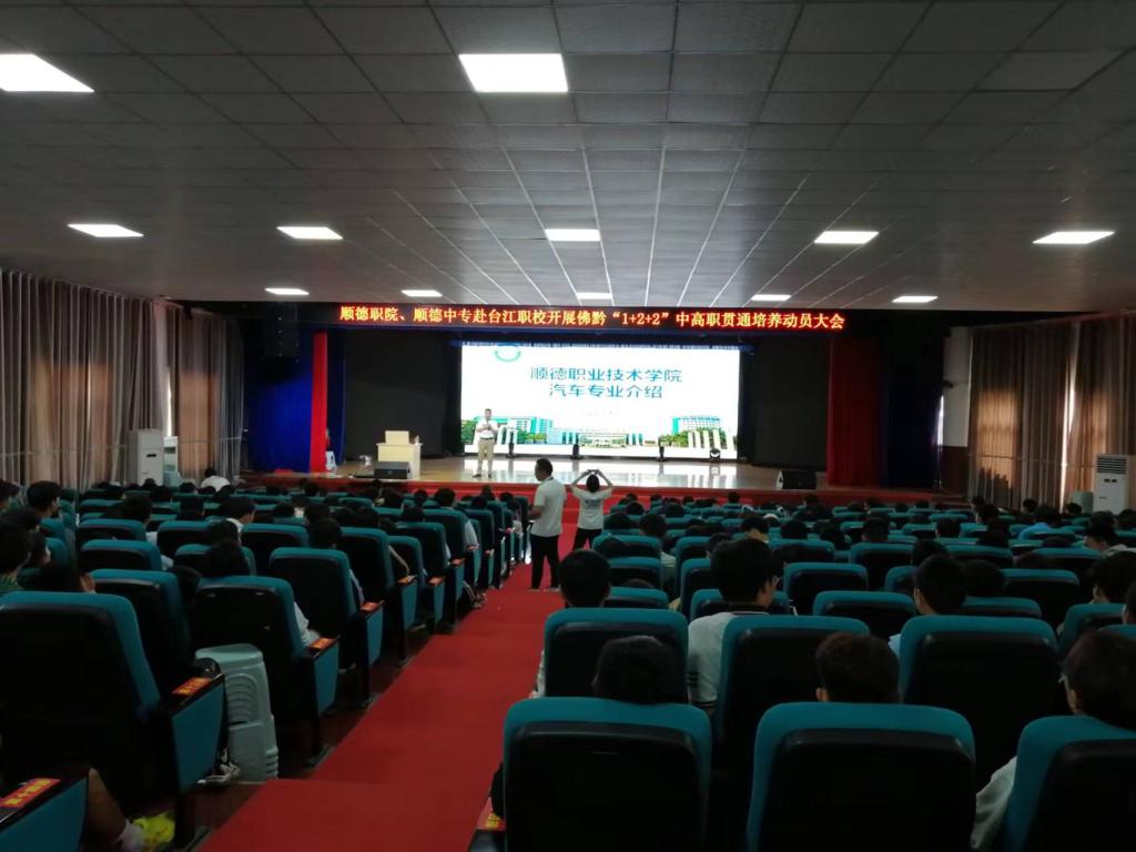 活动中,曾丹介绍了顺德中专办学情况,对汽车应用与维修等专业作了详细描述,对就读优惠政策进行了讲解。我校能源与汽车工程学院负责人介绍了学校办学情况、汽车制造与试验技术专业人才培养方案、就业前景等。两校有关负责人还与台江职校学生深入交流,解读“1+2+2”中高职贯通培养模式,了解学生想法及困难。