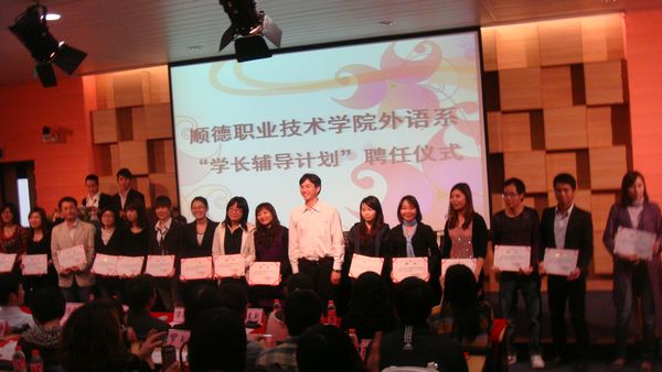 “学长辅导计划”是一项针对在校生开展的,旨在培养学生职业认同感,提高学生职业素质的“校友育人”计划。本次外语系共聘请了20位党员教师作为校内“职业导师”,聘请了22位校友为2010级学生的“职业导师”。
