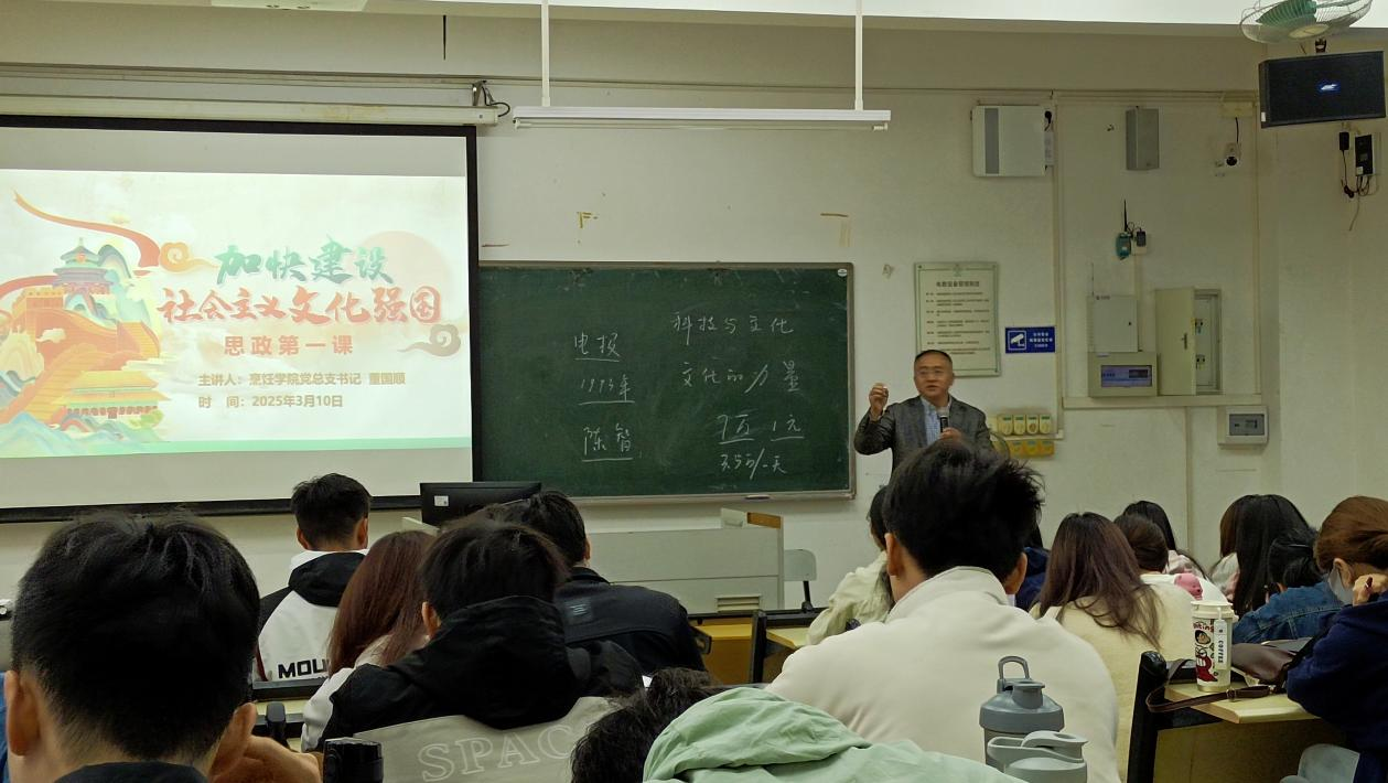 3月18日上午,烹饪学院党总支书记董国顺、副书记张志明分别为2024级学生讲授了“思政第一课”,以“加快建设社会主义文化强国”为主题,深入解读党的二十届三中全会精神,引导同学们将个人发展与国家战略紧密结合。