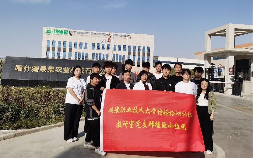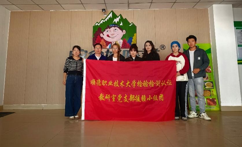 10月10日,轻化与材料学院“绿色丝路”援疆教师团队、检验检测认证教研室党支部携手喀什职业技术学院(简称“喀职院”)食品专业教师团队及喀职院现代农学院党支部,以“党建引领业务”为核心,联合带领学生开展访企拓岗调研暨支部共建活动。一行人先后走进当地疆南美、疆果果两家食品企业,在推进校企实训实习合作的同时,深化两校党支部党建交流。
