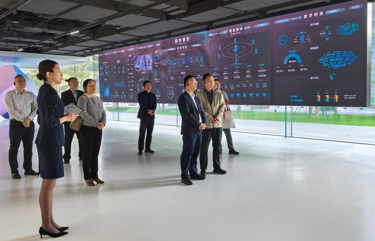 顺职大团队首先参观美的展厅,系统了解美的集团在智能制造、工业互联网、数字化转型等领域的前沿布局与实践成果。从智能家电的创新研发到“灯塔工厂”的精益运营,从美云智数工业软件的核心技术突破到产业生态的全方位构建,一系列成果充分彰显了美的集团作为本地龙头企业的技术硬实力与行业引领力。通过实地参观,顺职大团队对产业发展前沿趋势与高端人才需求导向形成了更直观、更深刻的认知,为双方后续精准对接合作筑牢基础。
