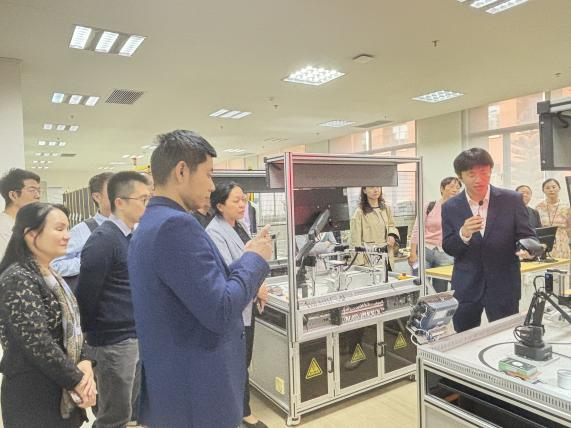 佛山大学机电和自动化学院在机电与自动化领域积淀深厚,实验室建设、管理运营及科创培育成果业内知名。交流中,代表团先后参观了其国家级卓越工匠创新研究院、重点实验实训室、重点实验室产业学院,全面了解实验室空间规划、设备配置与运维机制,重点调研“教学-科研-产业”协同及资源与产业需求对接模式。座谈环节,佛山大学先对学院发展历程及成绩进行了介绍,随后双方就联合人才培养、活动举办等展开深入讨论,佛山大学方系统分享成熟经验,为代表团提供重要参考。
