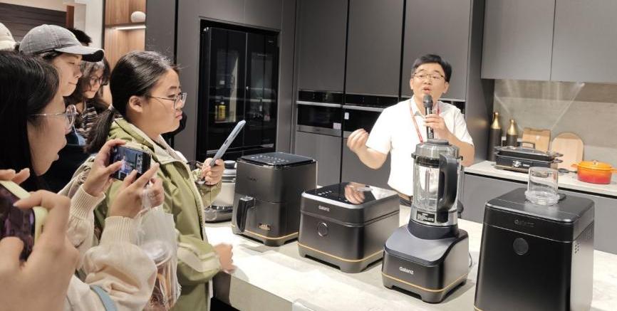 在格兰仕集团科技展厅与工业4.0智造工厂,全自动生产线以极高的效率和精度运转。同学们在感叹“佛山智造”速度的同时,更幸运的是,此行由格兰仕技术管理科科长徐文华亲自讲解。徐文华是我校杰出校友,曾获“全国五一劳动奖章”、“佛山大城工匠”等荣誉。他热情地分享了格兰仕的发展历程、产品设计流程,以及自己从设计专业学生成长为技术骨干的奋斗故事。他特别强调,要秉持对产品细节的极致追求,恪守 “零缺陷” 的质量准则,这番话语铿锵有力,深深鼓舞了在场的每一位同学。在互动环节,同学们就专业学习、职业发展等话题踊跃提问,徐文华一一耐心解答,用自己的亲身经历为同学们上了一堂生动的“职业发展课”。参观期间,我校杰出校友、格兰仕技术部总经理李丰也在百忙中与同学们见面互动。