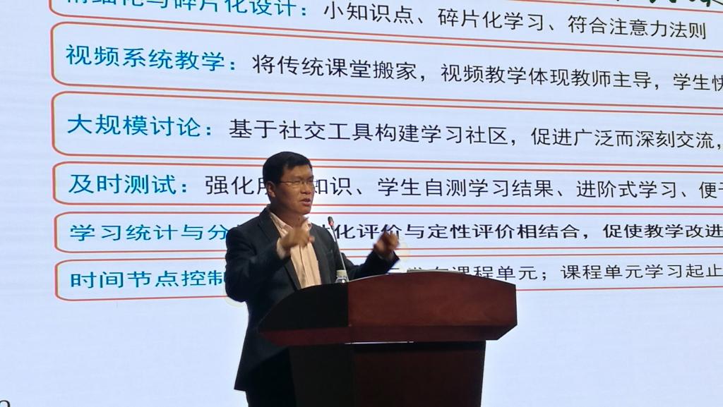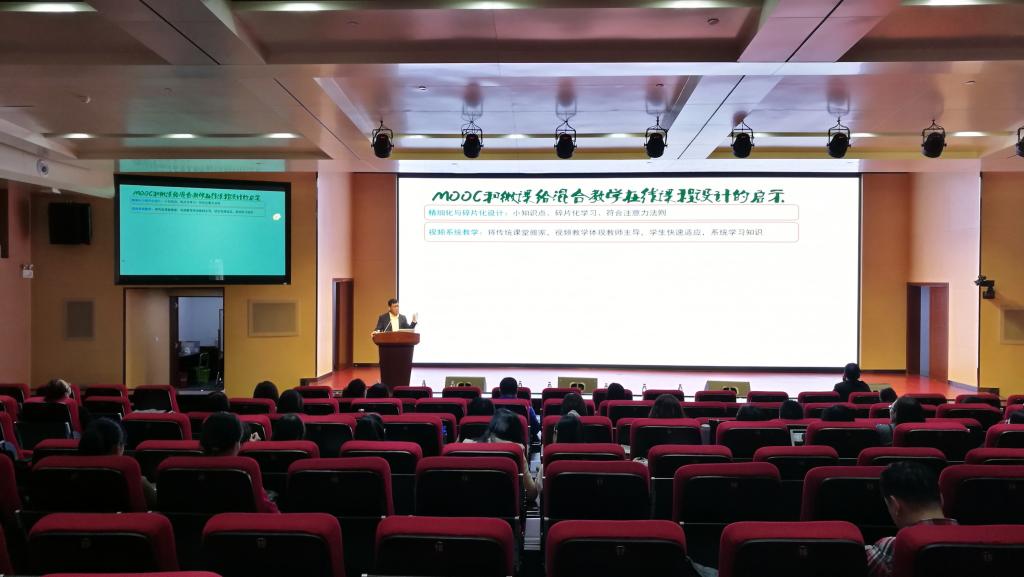 本次培训邀请了教育信息化专家、首都师范大学朱永海博士从混合教学的理念、设计到教学组织实施进行了全面的讲解。朱博士指出混合教学的目的是解决教学过程中遇到的实际问题,不能为了“混合教学”而“混合教学”,它运用“互联网+”的技术手段,依然秉承着“程序教学”的理念,教师们要结合自身的实际情况,循序渐进的开展混合教学工作。