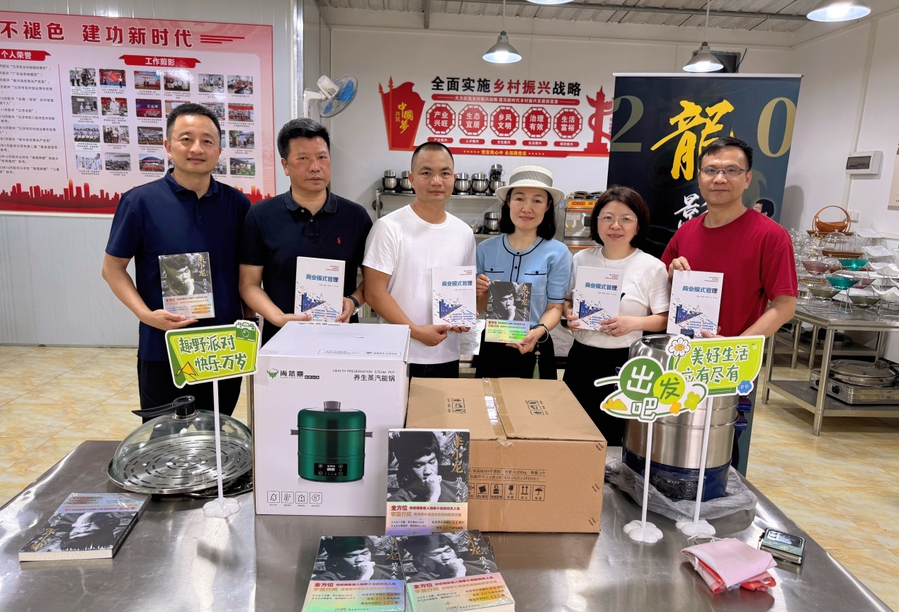 活动期间,校友理事会与新兴县相关单位召开多场座谈会,围绕“百千万工程”实施痛点及难点展开研讨,结合顺德区相关产业发展经验提出相关借鉴及合作发展建议。校友理事会会长梁健龙、副会长何潮俊、副秘书长罗芳向石金坤赠送烹饪厨具一套和顺德文化及企业商业管理相关书籍一套,为新兴县天堂镇特色餐饮与文旅产业赋能增智。